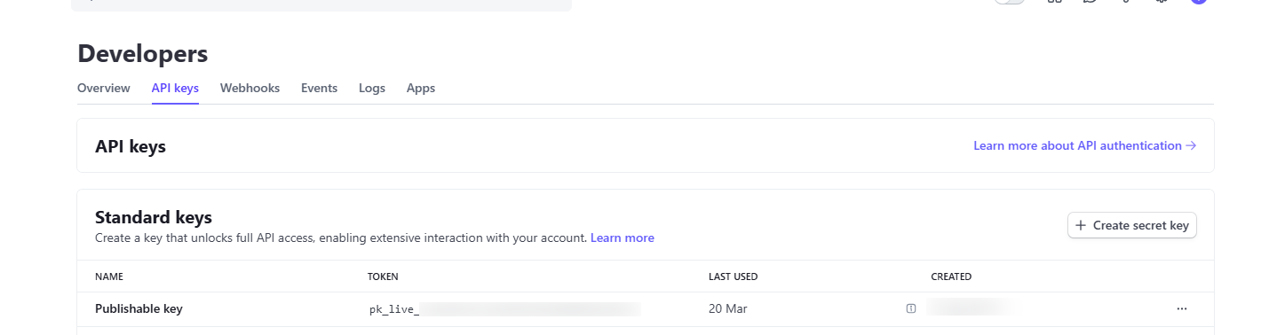 - This key is used on the client side for generating payment tokens and must have the required permissions.