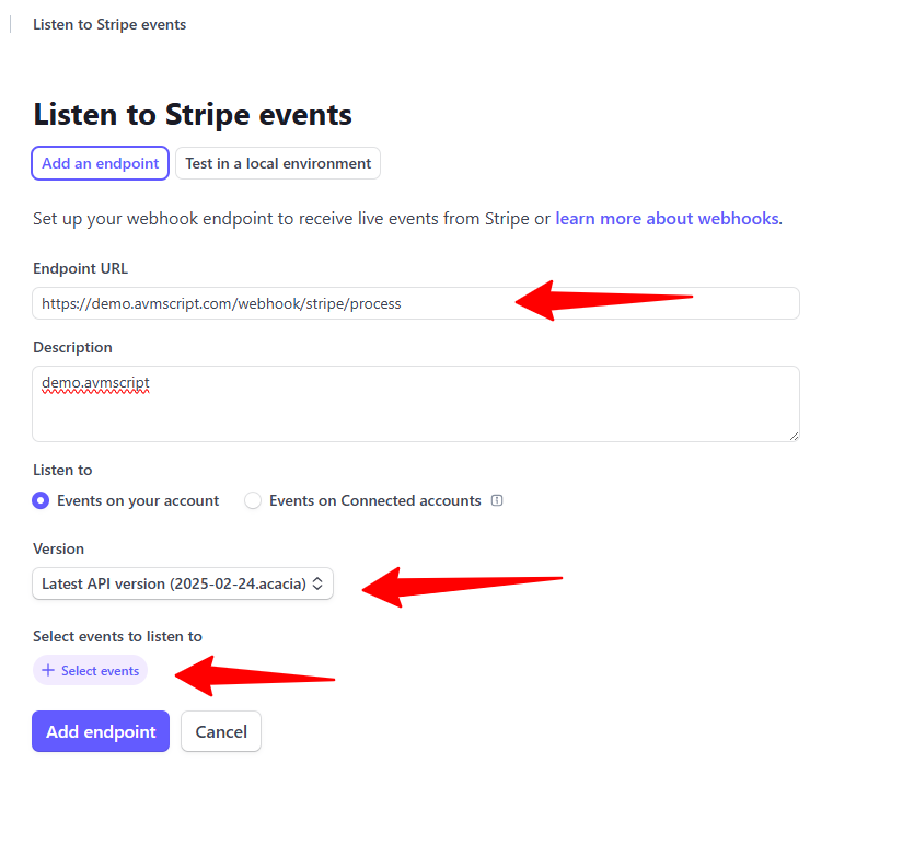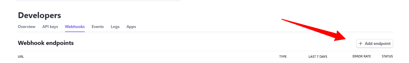 - In your Stripe dashboard, go to Webhook Endpoints and add a new endpoint.