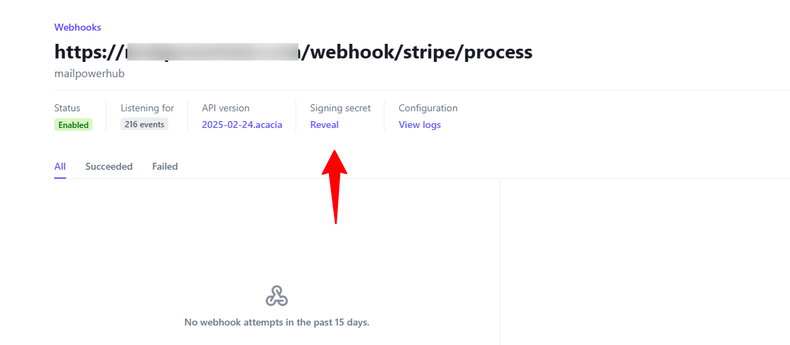 - Once the webhook is created, go to Signing Secret to view and copy your Webhook Key.