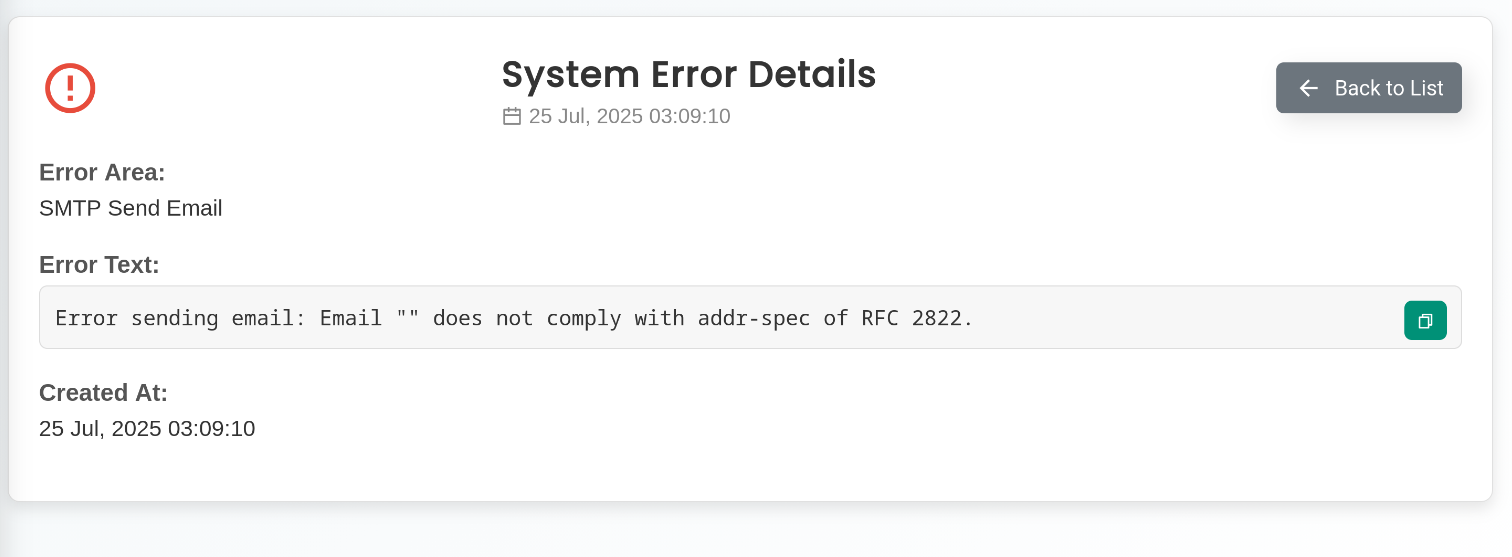 The System Error Log is designed to help monitor and diagnose issues related to your website’s functionality. Whenever the system encounters an internal or technical error, it automatically records the details in the error log for further inspection.